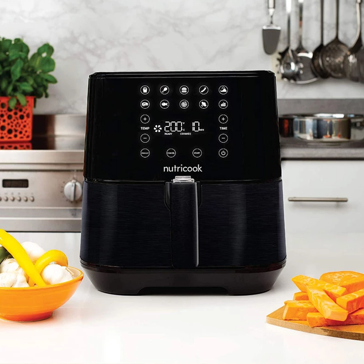 سرخ کن نوتریکوک مدل NUTRICOOK NC-AF205 با شعار Quicker (سریعتر) ، Crispier (ترد تر) ، Healthier (سالم تر) است. سرخ کن جدید شرکت نوتریکوک با طراحی براق (مشکی برس خورده) با کیفیت برتر ، اندازه جمع و جور می تواند سرآشپز هر آشپزخانه ای شود. با کمک فناوری SmartTemp به طور خودکار دما تنظیم می شود. سرخ کن AF205 دارای یادآوری مفید Shake است ، که به شما زمان تکان دادن محتویات را برای یکنواختی اطلاع می دهد. سبد سرخ شده با کیفیت عالی بدون PFOA ، بدون BPA ، با پوشش ضد چسب و قابل شستشو در ماشین ظرفشویی دارای فضای قابل استفاده بیشتری برای قرار دادن مواد غذایی ، بیشتر از یک سبد طرح گرد دارد.