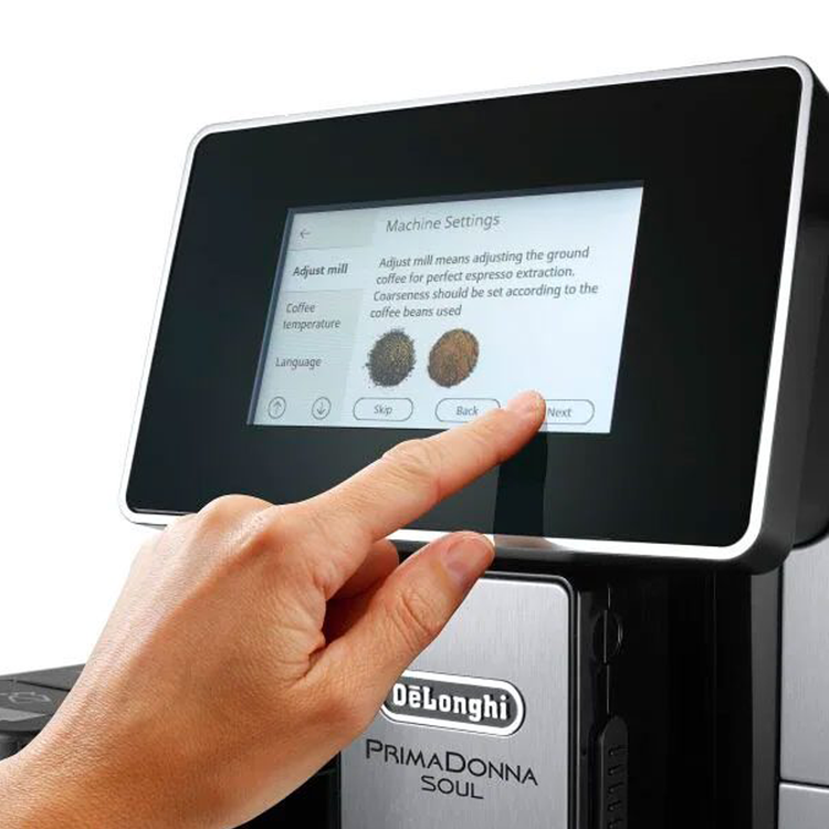این اسپرسو ساز دارای صفحه نمایش لمسی 4.3 اینچی رنگی است. ظاهر استاندارد کلیه نوشیدنیها بر روی صفحه نمایش قابل مشاهده بوده و شما میتوانید نوشیدنی خود را به راحتترین شکل ممکن سرو کنید.