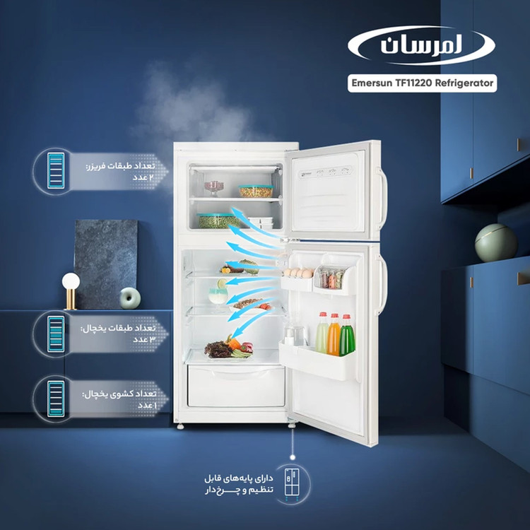 کشو و طبقات درب یخچال تلقی شفاف نشکن -کنترلر مکانیکی – محفظه نگهداری مواد غذایی منجمد – طبقات شیشه ای نشکن – جا لبنیاتی و بطری – کشوی میوه و سبزیجات تازه – پایه های قابل تنظیم و چرخ دار