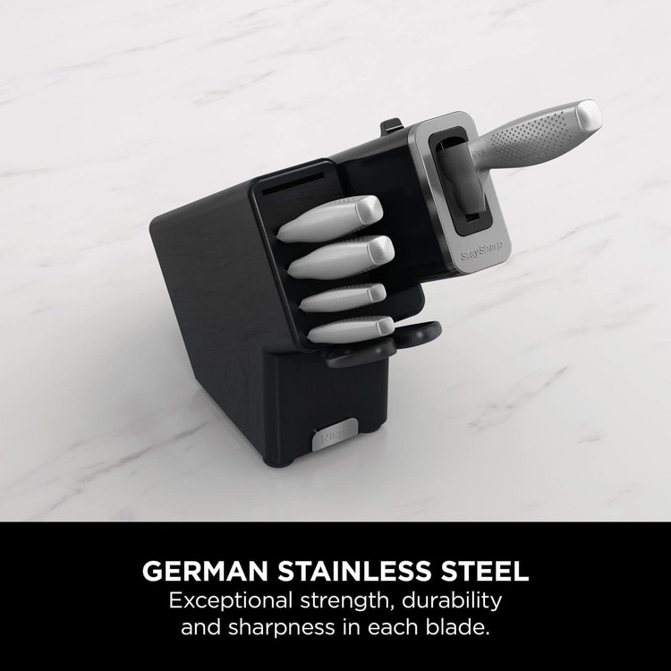 معرفی محصول: چاقوی سرآشپز ۲۰ سانتیمتری، چاقوی نان ۲۰ سانتیمتری، چاقوی ژامبون ۲۰ سانتیمتری، چاقوی کاربردی ۱۳ سانتیمتری، چاقوی خردکن ۹ سانتیمتری، و یک قیچی