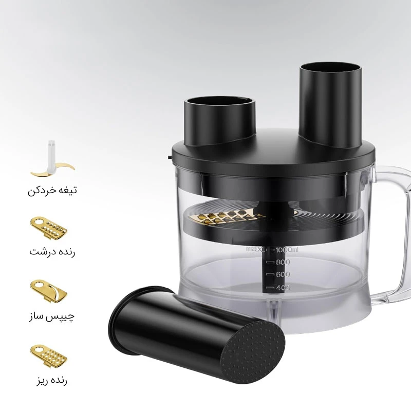 دفترچه راهنما ، لیوان مدرج ، رنده درشت ، رنده ریز ، همزن ، خردکن ، رنده چیپسساز